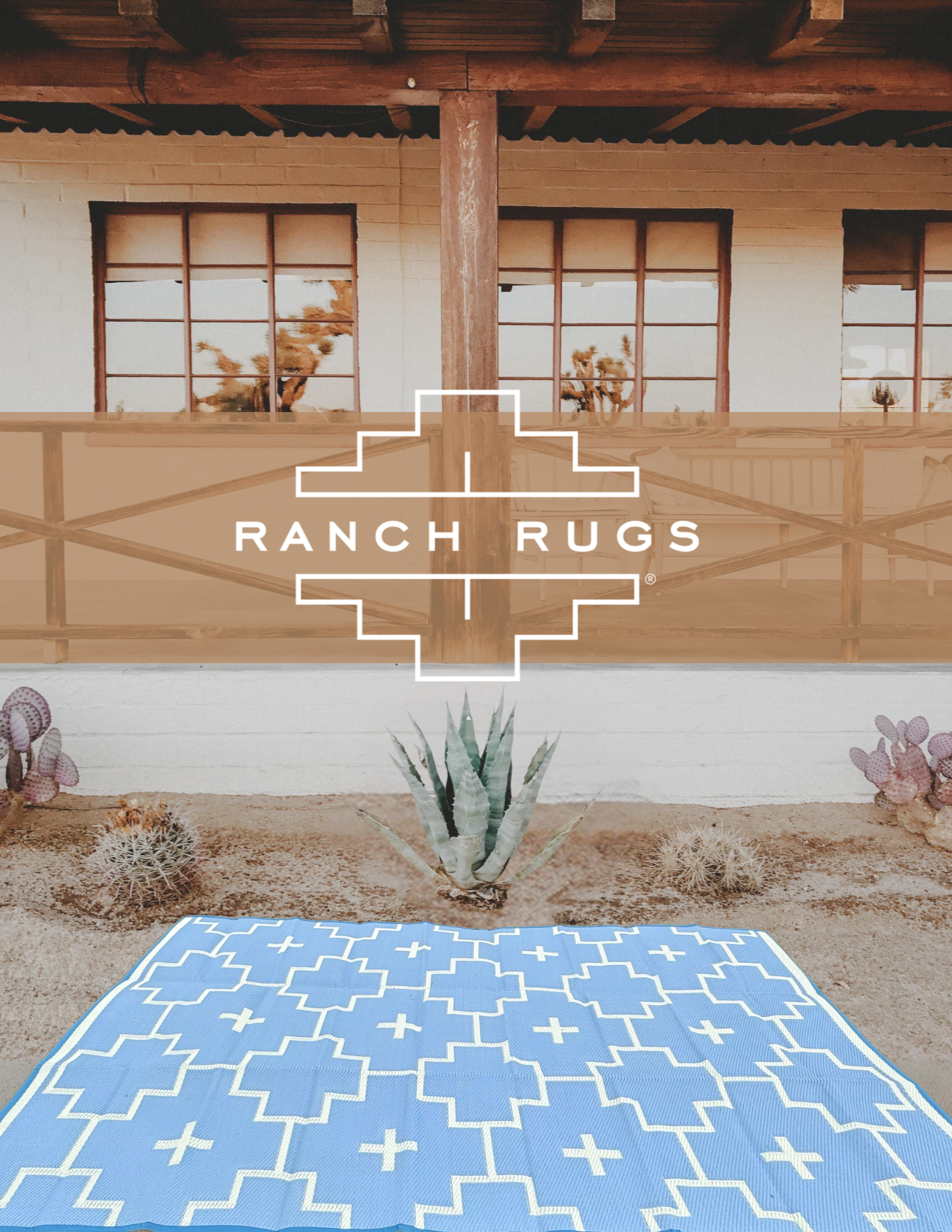 BLUE + IVORY - 6ft x 9ft - RANCH RUGS -LAJITAS DESIGN-